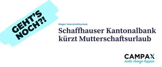 Keine Kürzung des MutterschaftsurlaubsDie SHKB will die Fortschritte des gesetzlichen Vaterschaftsurlaubs für Familien mit einer einer Kürzung des Mutterschaftsurlaubs zunichtemachen. Aus Gründen der Gleichberechtigung! 😡 Erwerbstätige Väter haben ab 2021 nach Geburt des Kindes Anspruch auf zwei Wochen Vaterschaftsurlaub. Unter dem Deckmantel der Gleichberechtigung und weil die Väter jetzt 2 Wochen gesetzlichen Vaterschaftsurlaub haben, kürzt die Schaffhauser Kantonalbank den Mutterschaftsurlaub um 2 Wochen auf das gesetzliche Minimum. Dies kommunizierte die rein männliche Geschäftsleitung am 16. August 2021. «Der Gesetzgeber hat neu einen Vaterschaftsurlaub vorgesehen. Daher ist es im Sinne der Gleichbehandlung richtig, die Dauer des Mutterschaftsurlaubes auf 14 Wochen anzupassen.» [1] Von Gleichbehandlung kann nicht die Rede sein, wenn Mütter – und damit die ganze Familie – dafür bestraft werden, dass Väter endlich ein Minimum an Vaterschaftszeit erhalten. Geht es nicht eher ums Sparen auf dem Buckel der Mütter? Die Bank profitiert nämlich eher von der des gesetzlichen Vaterschaftsurlaubs. Seit Anfang des Jahres wird dieser nämlich aus der Staatskasse finanziert. Zuvor bezahlte die Bank den Vaterschaftsurlaub freiwillig und aus der eigenen Tasche. Unter dem Strich kommt die Schaffhauser Kantonalbank neu also günstiger weg. Da bietet sich das Scheinargument der Gleichberechtigung natürlich an, noch etwas mehr zu sparen. Schlussendlich verliert die ganze Familie. Das darf nicht sein! Deshalb fordern wir die Schaffhauser Kantonalbank auf, diese Veränderung umgehend rückgängig zu machen. [1] Blick: Schaffhauser Kantonalbank kürzt Mitarbeiterinnen den Mutterschaftsurlaub https://www.blick.ch/wirtschaft/wegen-neuen-papi-ferien-kuerzt-schaffhauser-kantonalbank-ihren-mutterschaftsurlaub-ich-dachte-ich-spinne-als-ich-das-gelesen-habe-id16753903.html Quelle Screenshot / Petitionsbild: https://www.tagesanzeiger.ch/schaffhauser-kantonalbank-kuerzt-mutterschaftsurlaub-4160068603587.489 von 8.000 UnterschriftenGestartet von Campax - make change happen