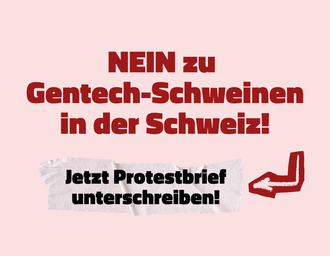 Protestbrief: NEIN zu Gentech-Schweinen in der Schweiz!Schockierend! Die NZZ am Sonntag hat aufgedeckt, wie intensiv in der Schweiz an der Zulassung von Gentech-Schweinen gearbeitet wird. Um ihre Ziele zu erreichen, sind der Lobby alle Mittel recht. Sie wollen Gentech-Schweine in die Schweiz bringen – ohne Rücksicht auf das Tierwohl, die Umwelt oder die menschliche Gesundheit! Die Schweine-Lobby will ihre Tiere gentechnisch verändern und auf die Schweizer Teller bringen. Das zeigen die Enthüllungen NZZ am Sonntag unmissverständlich. Auch wenn Gentech-Tiere bisher unbekannte Risiken für das Tierwohl, die Umwelt und unsere Gesundheit bergen, arbeitet die Lobby im Hintergrund mit Hochdruck an der Zulassung. Die negativen Auswirkungen auf das Tierwohl, die Schäden an der Umwelt oder die Gefahren für die menschliche Gesundheit sind völlig ungewiss. Als Konsument:innen sagen wir darum NEIN zu diesem riskanten Experiment. Die Schweiz braucht keine Gentech-Tiere! Unterschreibe jetzt diesen wichtigen Protestbrief an Bundesrat Albert Rösti!1.111 von 2.000 UnterschriftenGestartet von Verein für gentechnikfreie Lebensmittel