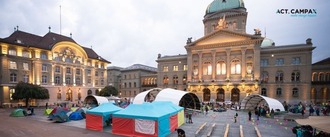 Solidarity with the Swiss Climate Movement: #RiseUpForChangeAt the climate camp the different actors of the climate justice movement with Climate Strike Switzerland, Extinction Rebellion Siwtzerland, Collective Climate Justice and Collectif Break Free are for the first time working hand in hand. From September 20th to the 25th they show how a future climate just society could look like. With workshops, discussions and different actions Beim Klimacamp arbeiten erstmals die verschiedene Akteur*innen der Klimagerechtigkeitsbewegung wie Collective Climate Justice, Extinction Rebellion, Klimastreik und Collectif Break Free alle zusammen. Vom 20. bis zum 25. September wird in Bern gezeigt, wie ein klimagerechtes Zusammenleben in Zukunft aussehen kann. Workshops, discussions and various activities will address the most diverse aspects of climate justice. Collectively, the activists want to think in climate assemblies about how a social and just world, without exploitation of nature, can look like. For the National Council, on the other hand, peace, order and an unobstructed walk for politicians across the square in front of the Swiss parliament seem to be more important than a right to life and a secure future. Instead of facing up to the challenges of the climate crisis, a majority in parliament wants to have those who remind it of its responsibility in the current emergency removed. In doing so, the majority of parliamentarians are taking the side of those who are prepared to sacrifice our future and the lives of people in the Global South for short-term profit. While the livelihoods of all of us continue to be destroyed, activists are being criminalized for their involvement. The Swiss government is responsible for the climate crisis and thus for the suffering and death of millions of people worldwide. The climate crisis does not allow any further delay.480 von 500 UnterschriftenGestartet von Campax - make change happen