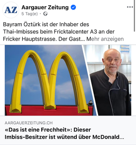 Wir fordern die Verlängerung des Mietvertrags von Take Away Asian Food Frick. Unser beliebtes Lokal soll einem Neubauprojekt weichen, an dessen Stelle ein McDonald’s entstehen soll. Bitte unterstützen Sie uns, damit unser einzigartiges Restaurant erhalten bleibt und die Vielfalt in unserer Gemeinde nicht verloren geht.