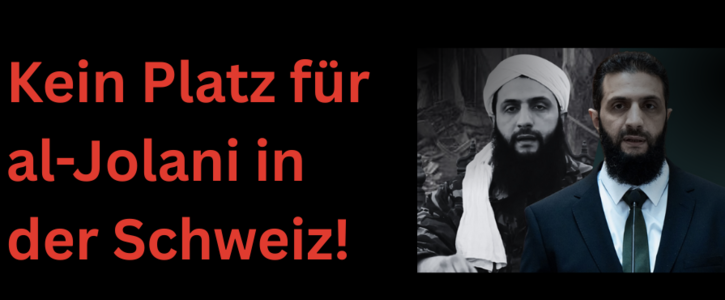 Wir verurteilen die Einladung al-Jolani's aufs Schärfste und fordern den Bundesrat dazu auf, al-Jolani nicht in die Schweiz einreisen zu lassen.