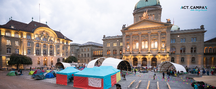 Les mouvements pour le climat ont, dès lundi 21 septembre au matin, occupé la place fédérale. La ville de Berne a envoyé aux militant.e.s un ultimatum, la place doit être libérée d’ici mardi midi. Le Conseil National a demandé lundi soir à la ville, sur une motion d’ordre du conseiller UDC Thomas Aeschli, d’expulser les activistes de la Place Fédérale.