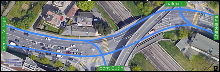 - offrant une voie « Châtelaine ⇨ Vernier Village » (dédiée ou mixte)